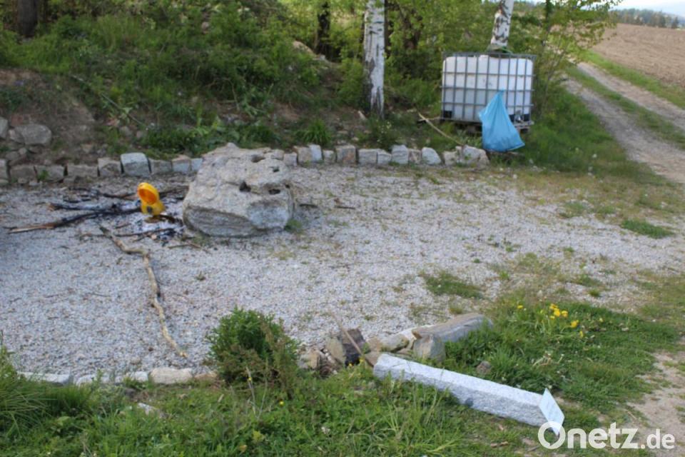 Zerstörungswütige Zeitgenossen haben am Wochenende ihren Aggressionen freien Lauf gelassen. An der ehemaligen Zolltafel auf dem Weg zwischen Ebnath und Hermannsreuth hinterließen bisher noch unbekannte Vandalen in der Nacht zum Sonntag ein Bild der Verwüstung. Vor zwei Jahren hatte der Fichtelgebirgsverein diesen schönen Flecken wunderbar hergerichtet. Die Mitglieder hatten den Platz mit Steinen und Anpflanzungen ansprechend gestaltet. Eine Sitzgelegenheit für alle Wanderer wurde geschaffen. Jetzt haben Randalierer einen Granitstein, der den Hinweis auf die alte Zolltafel trägt, einfach umgerissen. Ein Schutzengel, der den Platz verschönert hatte, wurde zerstört. Ein angrenzendes Feldkreuz wurde locker gerissen. Mitten auf dem Platz wurde ein Feuer geschürt, Bierflaschen wurden zertrümmert. So wurde der Platz sinnlos verunstaltet. Die Verantwortlichen vom Fichtelgebirgsverein waren sprachlos. Sie würden sich deshalb über Hinweise, die zur Ermittlung der Täter führen, freuen. Das "Kunstwerk Flor" aus Ebnath setzt eine Belohnung von 1000 Euro aus. Sollten sich die Übeltäter freiwillig bis kommenden Donnerstag beim Fichtelgebirgsverein Ebnath unter Telefon 0176/78923838 oder der Gemeinde Ebnath melden und für den Schaden aufkommen, wird von einer Anzeige abgesehen.