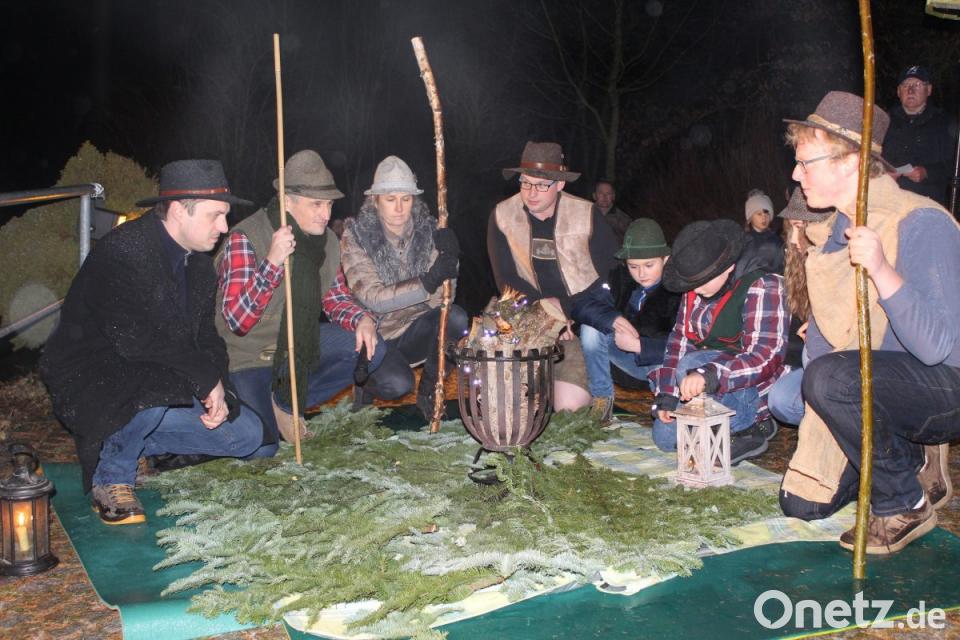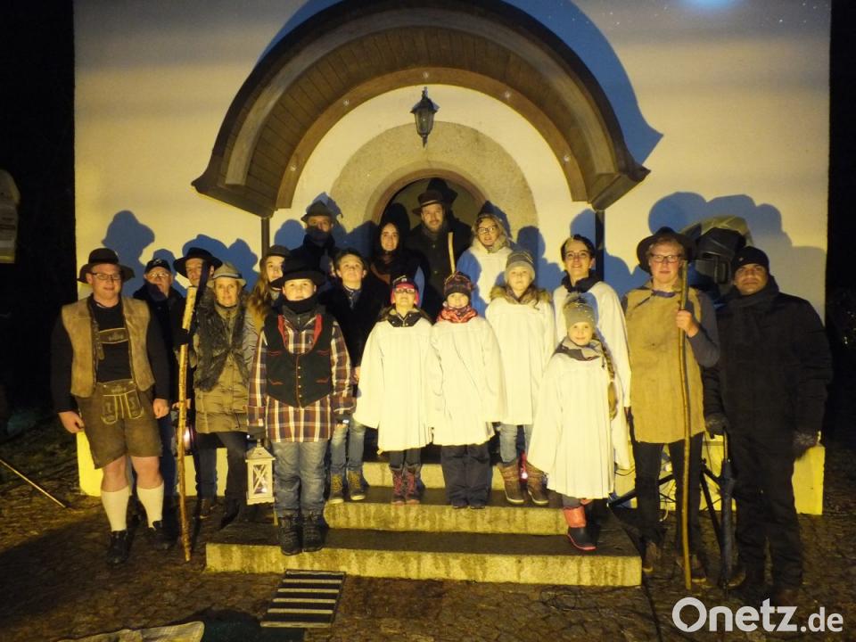 Zu den Klängen der Fichtelgebirgskapelle unter Leitung von Johannes Prechtl sangen die Teilnehmer Weihnachtslieder. Nachdem Alfons Eichhorn das Gedicht „Heilige Nacht“ von Ludwig Thoma vorgetragen hatte, zeigten Kinder, Jugendliche und Erwachsene der Kolpingfamilie mit einem Krippenspiel die Geburt Jesu. Engel zeigten dabei den Hirten den Weg zur Krippe. Diese folgten dem Licht und fanden Maria und Josef mit dem Jesuskind im Stall. Kerstin und Uwe Lichteblau verkörperten Maria und Josef.