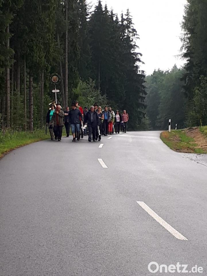 Und wieder war eine Gruppe aus der Pfarrei St. Ägidius zur traditionellen Fußwallfahrt zum Armesberg aufgebrochen. Weil es stark regnete, war die Anzahl der Wallfahrer diesmal kleiner als in den vergangenen Jahren. Die Fichtelgebirgskapelle unter Leitung von Johannes Prechtl führte den Zug zusammen mit dem Bildträger Hans-Jürgen Enders an. Über den Witzlasreuter Weg in Richtung Goldbach führte der Weg durch die Natur nach Witzlasreuth. Am Ortseingang spielte die Fichtelgebirgskapelle. Auf dem Weg wurde der Rosenkranz und Texte für die verschiedenen Anliegen gebetet. Im Feuerwehrhaus in Oberwappenöst wurde eine Pause eingelegt, die Mitglieder der Feuerwehr hatten wieder Kaffee und Kuchen für die Wallfahrer vorbereitet. Weiter ging die Wallfahrt dann über Wunschenberg und Erdenweis zum Ziel. Dort zelebrierte der Ebnather Pfarrer Pater Anish George den Wallfahrergottesdienst, der von der Fichtelgebirgskapelle Ebnath musikalisch umrahmt wurde. In seiner Predigt ging der Geistliche auf die Bedeutung der Heiligen Dreifaltigkeit ein. Auch wenn es das Wetter in diesem Jahr nicht so gut meinte, war es wieder eine gelungene Wallfahrt.