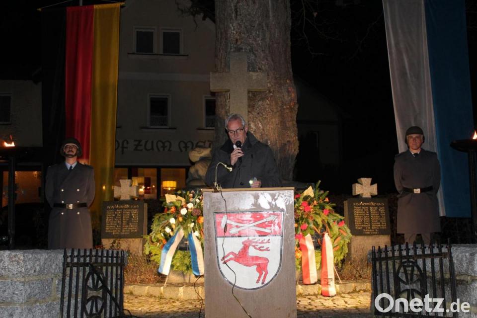 Nachdem die Gemeinde und die Krieger- und Soldatenkameradschaft Kränze niedergelegt hatten, wurde der Toten und Vermissten der beiden Weltkriege gedacht. Bürgermeister Manfred Kratzer erinnerte an die Opfer und das Leid. „Auch wenn wir uns glücklich schätzen sollten, in den vielen Jahren seit Beendigung des Zweiten Weltkrieges von Elend , Tod und Grausamkeiten verschont worden zu sein, ist das Geschwür des Neides, der Hetze und der Niedertracht immer noch am Leben.“, so der Bürgermeister.