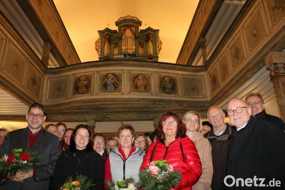 Pfarrer Matthias Ahnert freute sich, zum Abschluss des Festtages Kirchenmusikdirektor nd Dekanatskantor Gerd Hennecke, Heidi Wohlfahrt und Elsbeth Maderer an der Orgel willkommen heißen zu können.