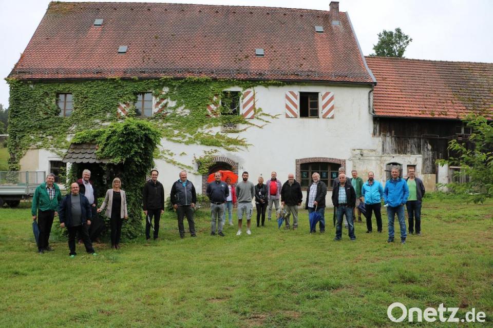Auf dem Vorplatz des ehemaligen Edelsitzes Weißenberg, eher bekannt als Weißenberger Schloss, trafen Bürgermeister Hans-Jürgen Strehl, die Gemeinderäte und Vertreter der ortsansässigen Vereine den neuen Eigentümer Volker Noffke. Der Steuerberater mit Büro in Schnaittenbach kündigte an, das Objekt mit der nötigen Ruhe und Sorgsamkeit zu sanieren und zum Zentrum des Dorfes zu machen. Architekt Georg Zunner aus Amberg begleitet das Projekt fachlich.