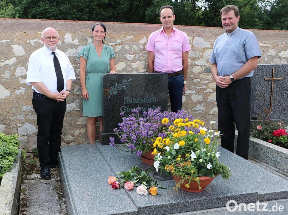 Jüngst gingen Bürgermeister Hans-Jürgen Strehl, Pfarrer Hans Zeltsberger, Pfarrer Matthias Ahnert und die Kindergartenleiterin Sonja Winter auf den Friedhof, um der Schwestern zu gedenken. Sie stellten eine Blumenschale ab und sprachen ein gemeinsames Gebet. Sonja Winter hatte fünf verschiedenfarbige Rosen dabei; für jede derzeitige Kindergartengruppe eine zum Dank.