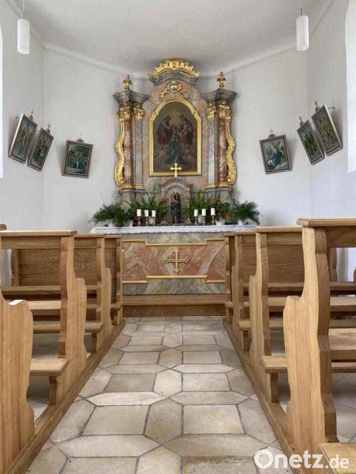 Heute erstrahlt das kleine Kircherl mitten im Dorf in neuem Glanz. Die Renovierung der Kapelle ist mit der Erneuerung der Kirchenbänke grundsätzlich abgeschlossen. Diese Maßnahme konnte durch viel Eigenleistung der Dorfbewohner und mit finanzieller Unterstützung der Marktgemeinde Hohenburg, der Pfarrei Adertshausen und durch das Leader-Projekt „Unterstützung Bürgerengagement“ umgesetzt werden. Eigenleistung wird in Egelsheim grundsätzlich groß geschrieben: nicht nur bei der Renovierung der Kirche, sondern auch beim Bratenbrutzeln und Kuchenbacken.