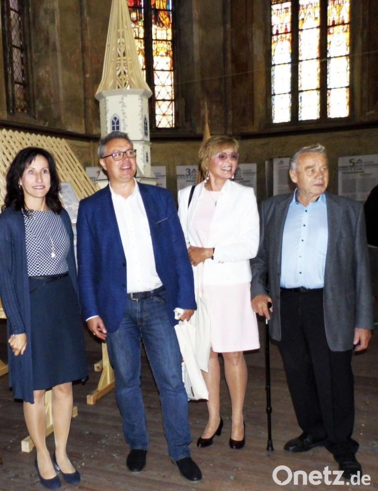 Bei der Feier dabei waren Tanja Schiffmann (Bürgermeisterin aus Parkstein), Michal Pospisíl (Vizebürgermeister Cheb) mit Vertretern des Stadtrats, Bauhistoriker Michal Panácek (Ersteller der Dachstuhl-Pläne), Konrad Dippel (Stifter des benötigten Bauholzes) und Maria und Günther Juba. Auf deren Initiative geht der Bau der Modelle zurück. Ferner waren dabei Ulrika Hart (Mitglied Stiftungsfonds Historisches Cheb), Karlheinz Hoyer (2. Bürgermeister Waldsassen) sowie der Amberger Berufsschullehrer Karl Müller, Tobias Knauer von der Handwerkskammer Weiden und Rainer Christoph vom Förderverein Goldene Straße. (gjb)