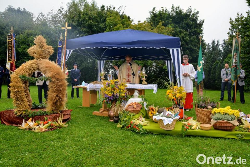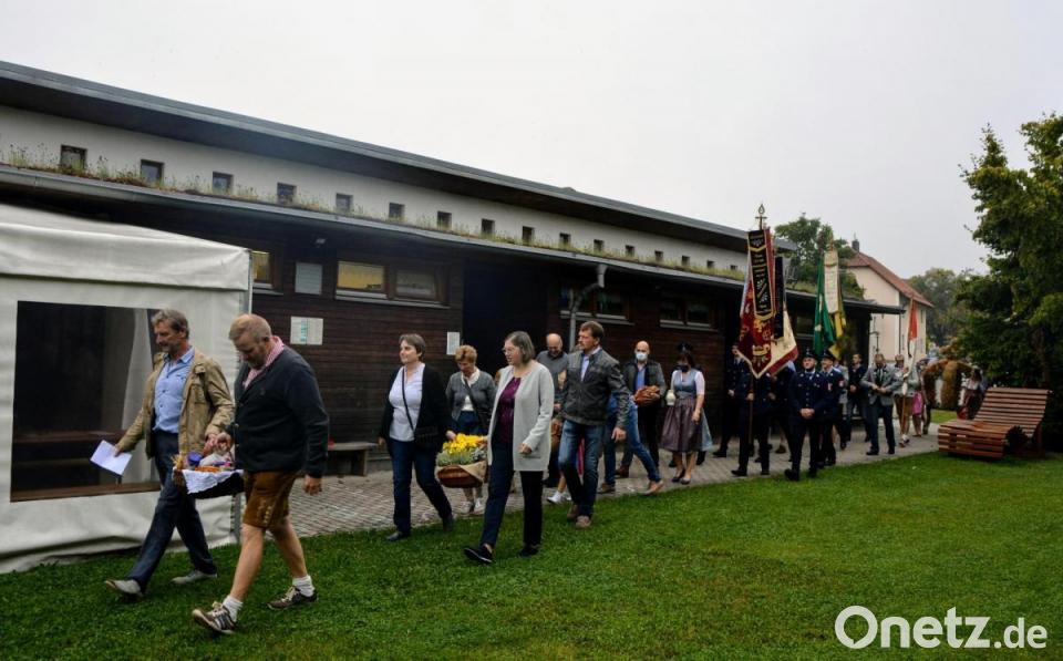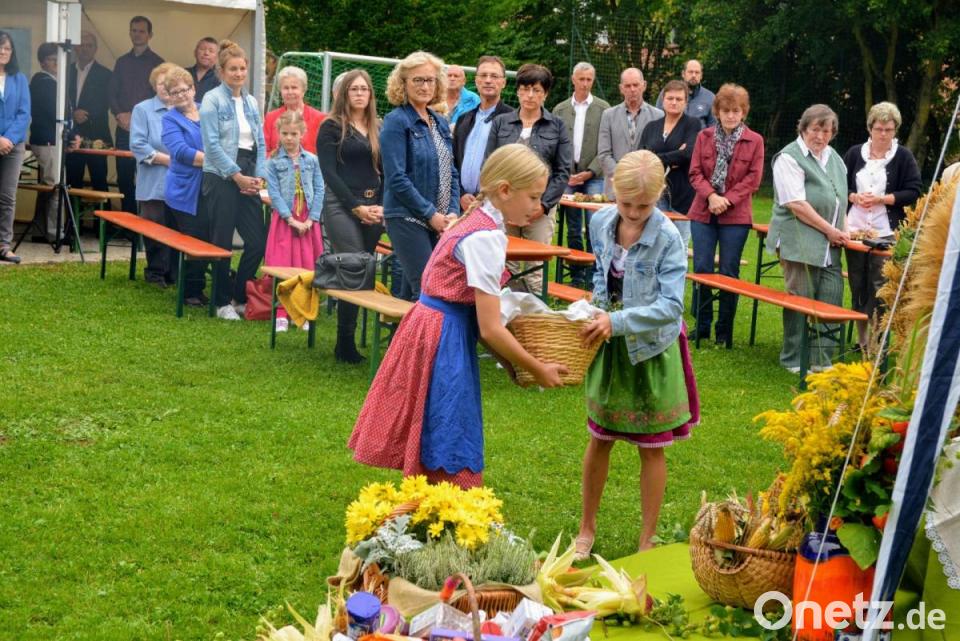 Alle zwei Jahre feiert die Pfarrei St. Michael ein großes, vorgezogenes Erntedankfest. Der Festgottesdienst fand auf der Freifläche vor dem Gemeinschaftshaus statt. Viele Gläubige und Fahnenabordnungen der Vereine beteiligten sich. Pfarrer Johann Hofmann ging in seiner Predigt auf die Enzyklika Laudato Si, von Papst Franziskus ein. „Jede Gemeinschaft darf von der Erde das nehmen, was sie zu ihrem Überleben braucht, hat aber auch die Pflicht, sie zu schützen und das Fortbestehen ihrer Fruchtbarkeit für die kommenden Generationen zu gewährleisten“. Zur Gabenbereitung wurden Früchte und Pflanzen zum Altar gebracht. Auch Werkzeug und Schulsachen waren dabei, als Dank für alles Gute, was wir bekommen. Nach dem Gottesdienst luden Bauernverband und Landvolk noch zu Mittagessen und später Kaffee und Kuchen ein.