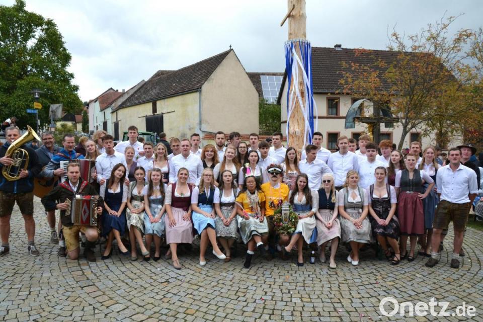 Den Auftakt der Kirwa in Ehenfeld machte bereits am Freitagabend die Sportheim-Kirwa auf der Löschenhöhe. Pächterin Hildegard Brunner und ihre Helfer konnten viele Gäste begrüßen. Nach einer kurzen Nacht wollten die Kirwaburschen die vorher ausgewählte Fichte aus dem ehemaligen Gemeindewald holen. Allerdings hatten die Massenrichter Kirwaburschen dies mitbekommen und den Baum vorher abgesägt und abtransportiert. Schnell fand man Ersatz: Die Wahl fiel auf ein wahres Prachtstück von Fichte. Geschmückt von den Kirwamoidln wurde der Baum um 12 Uhr am Platz vor dem Gemeinschaftshaus aufgestellt, koordiniert von Franz Birner und mit technischer Absicherung durch den Lader von Christian Meier.