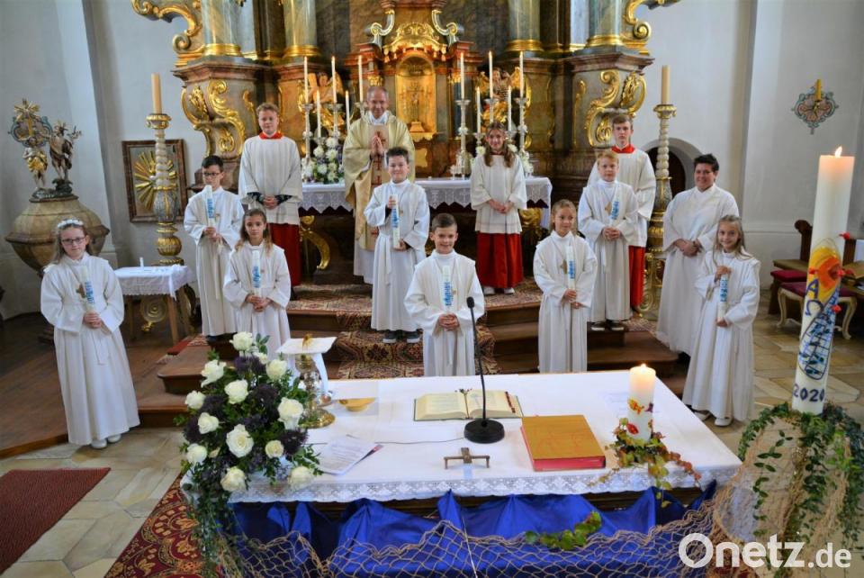 Vier Mädchen und vier Buben feierten in der Pfarrei Ehenfeld ihre Erstkommunion. Zusammen mit Pfarrer Johann Hofmann und Gemeindereferentin Barbara Schlosser zogen sie in die mit Herbstblumen geschmückte Pfarrkirche St. Michael ein. Wegen der Corona-bedingten Beschränkungen konnten nur die Angehörigen der Erstkommunikanten an dem Festgottesdienst teilnehmen. Eingeladen hatten die Kinder aber auch die beiden Lehrkräfte der Ehenfelder Schule, Amelie Schaller und Sophie Högl. Nicole Allwang mit der Trompete und Andreas Basler an der Orgel gestalteten die Messe musikalisch. In seiner Predigt ging Pfarrer Hofmann auf Jesus als Menschenfischer ein. Er freue sich, dass die acht Kommunionkinder dem Erlöser ins Netz gegangen seien. Die Mädchen und Buben wurden in die Messe aktiv mit einbezogen. Höhepunkt des Feier war der Empfang der Erstkommunion, zu dem sich die Kinder um den Tisch des Herrn versammelten. Den Abschluss dieses besonderen Tages im Leben der acht jungen Christen bildete eine nachmittägliche Andacht in der Pfarrkirche.