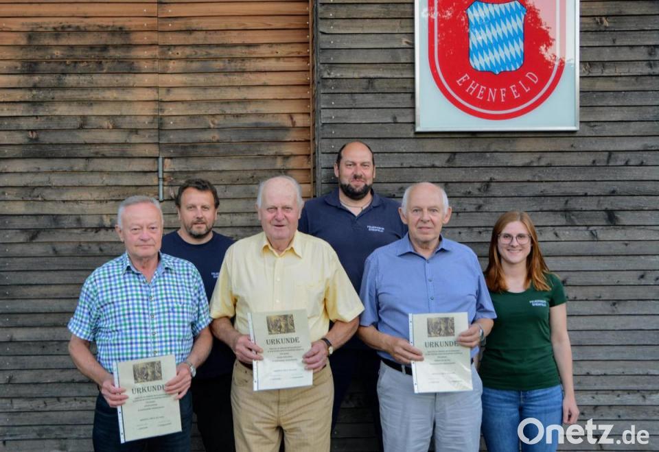 Bei ihrem Sommerfest ehrte die Feuerwehr Ehenfeld langjährige Mitglieder. Ihre Premiere hatte dabei die Zweite Vorsitzende Selina Dorner. Sie nahm, unterstützt von den beiden Kommandanten Christian Lenk und Klaus Schlosser, die Auszeichnungen vor. Für 50 Jahre Mitgliedschaft wurden Anton Basler, Georg Kustner, Konrad Landgraf und Sebastian Mayer geehrt. 55 Jahre Mitglied ist Franz Bauer, und Georg Schlosser gehört sogar seit 65 Jahren der Wehr an. Junge Vereinsmitglieder sorgten an Ausschank und Grill für Essen und Getränke.
