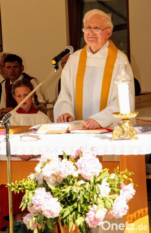 Den Auftakt des Festtages bildete ein Gottesdienst auf dem Gelände des Gemeinschaftshauses. Zelebranten waren der Ehenfelder Ruhestandspfarrer Konrad Kummer und Pfarrer Konrad Seidl, der in den Jahren 1967 bis 1975 in Ehenfeld gewirkt hat. Allein die Ankündigung, dass der Geistliche den Festgottesdienst mitfeiert, sorgte für viele zusätzliche Gottesdienstbesucher. In seiner Predigt zum Thema "Nehmt Gottes Melodie in euch auf“ verband Seidl den Glauben und die Musik sehr anschaulich mit vielen praktischen Beispielen. Nach dem Gottesdienst führte er viele Gespräche, und alle waren überrascht, wie viele Namen und Begebenheiten er nach über 45 Jahren seit seiner Zeit in Ehenfeld noch parat hatte.