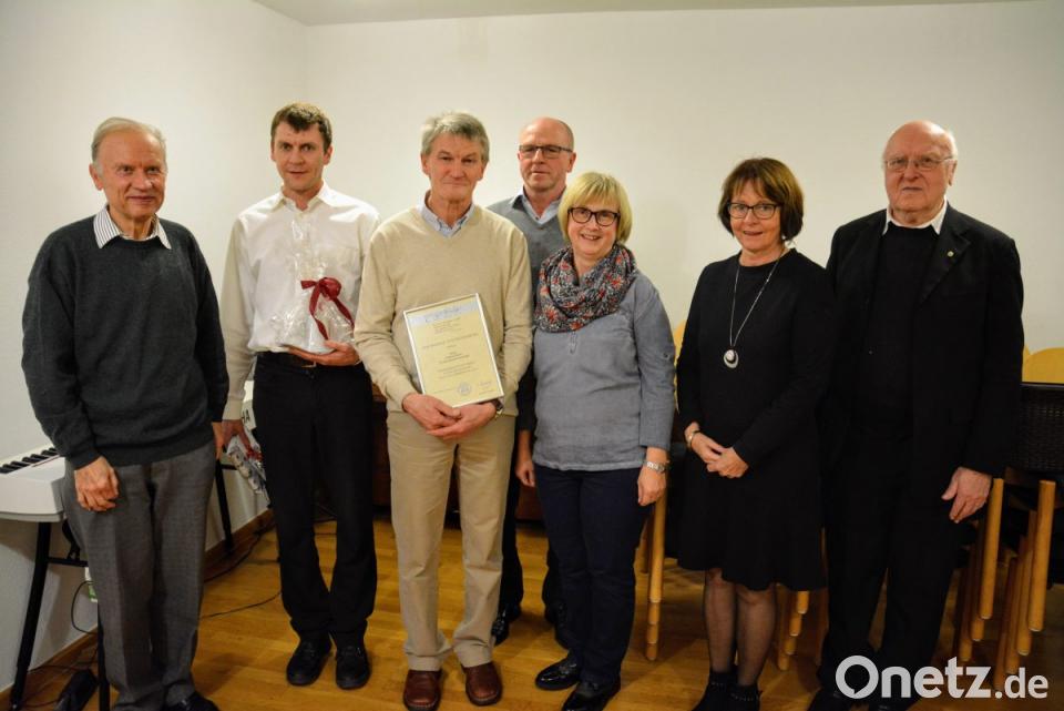 Höhepunkt der Feier war die Ehrung von Gerhard Basler für 25 Jahre Zugehörigkeit zum Kirchenchor. Die Chorleiterin und Pfarrer Hans-Peter Bergmann überreichten ihm die silberne Nadel mit Dankurkunde der Diözese. Mit ihm zusammen wurde auch sein Sohn Andreas gewürdigt. Er spielt seit seinem elften Lebensjahr die Orgel in der Pfarrkirche St. Michael und hat den Chor in den vergangenen 25 Jahren bei allen wichtigen Einsätzen begleitet. Für die Chorleiterin ist er mit seiner Ruhe, die er immer ausstrahlt und seinem musikalischen Können, der sichere Rückhalt für den Chor. Dankesworte gab es auch an Kirchenpfleger Joachim Winkler und Iryna Hermann die oft das Orgelspiel bei Beerdigungen übernimmt.
