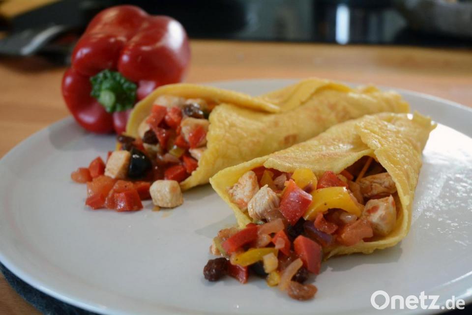 "Die ,Enchiladas de Pollo' sind mit Hühnerfleisch gefüllte Eierkuchen", erklärt OWZ-Küchenchef Michael Schiffer. "Sie stammen aus der indianisch-mexikanischen Küche, in der sehr viele Speisen mit Maismehl zubereitet werden."