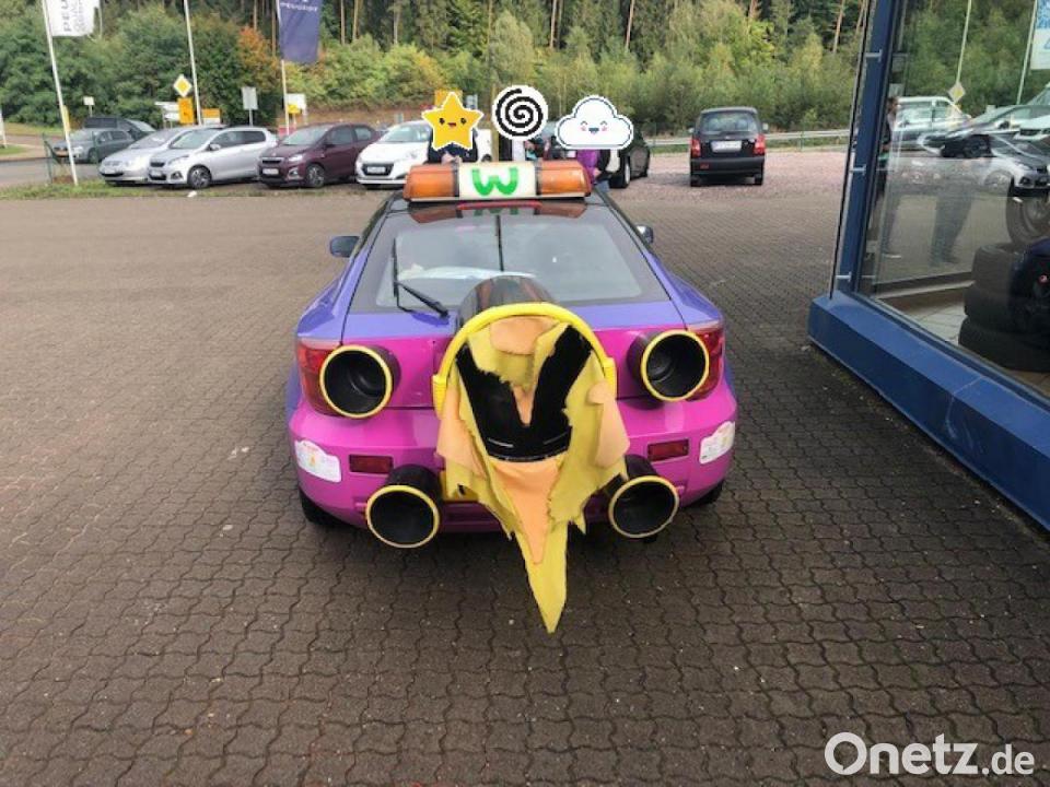Das Fahrzeug erregte Aufmerksamkeit: Polizeibeamte der Polizeiinspektion Dahn in Hauenstein (Rheinland-Pfalz) kontrollierten deswegen den laut Meldung der Polizei "technisch-auffälligen PKW" mit britischer Zulassung. Im Bereich des Kühlergrills war mittels Schrauben und Schaumstoff eine Art Nase angebracht. Das Fahrzeug sollte wie ein Einhorn aussehen. Auf dem Kühlergrill und Fahrzeugdach waren verschiedene aus Spanplatten gefertigte und mittels metallenen T-Stücken fixierte "Flammen" fest verbaut. Ein orangefarbener Rundumkennleuchten-Balken mit Lautsprecher war verbaut. Am Heck waren insgesamt fünf schwarze Plastikeimer in verschiedenen Größen angebracht, welche wie ein Triebwerk aussehen sollten.