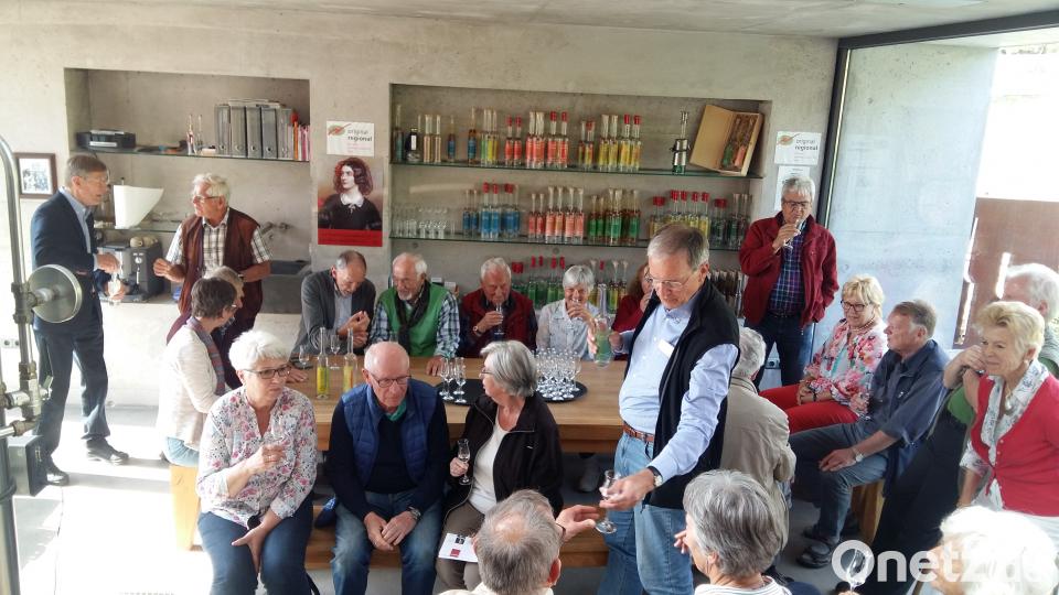 AOVE-Sprecher Bürgermeister Bernhard Lindner und Geschäftsführerin Waltraud Lobenhofer stellten die über 20-jährige Geschichte der AOVE vor. Begeistert war die Gruppe von der Kulturscheune, von den Edelbränden des Hausherrn Günter Preuß und der Begleitung durch die Hoidlbrummer mit Dieter Kohl.