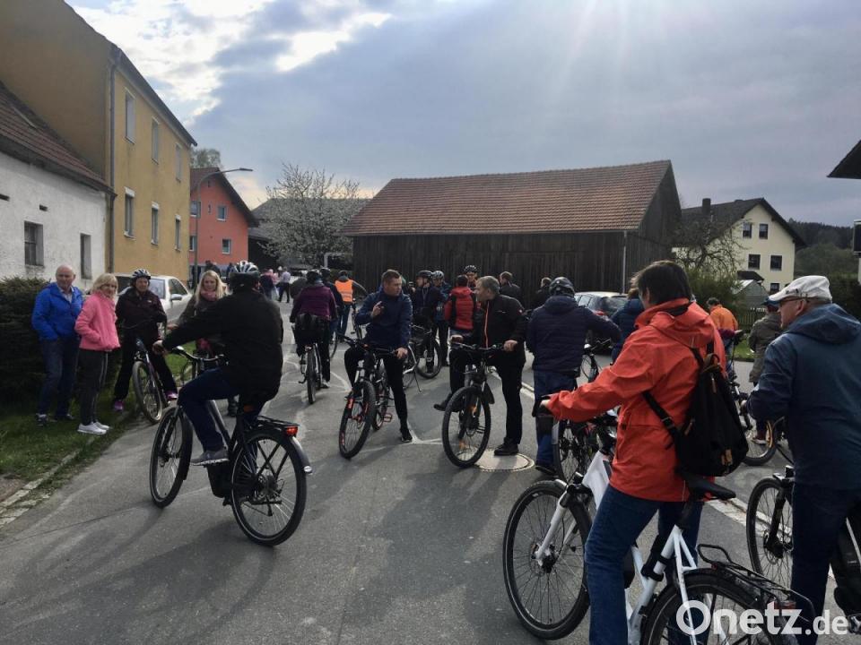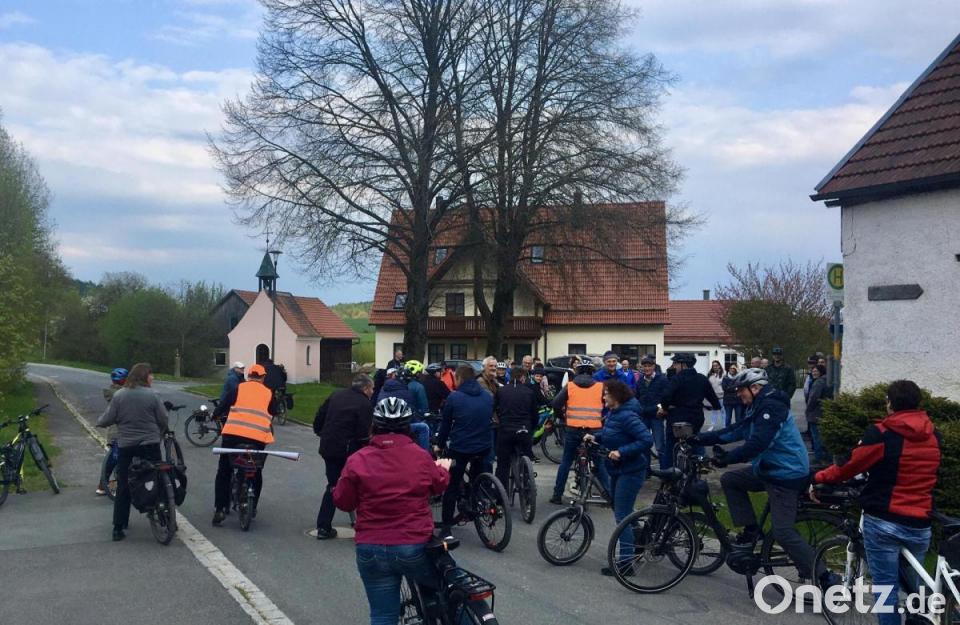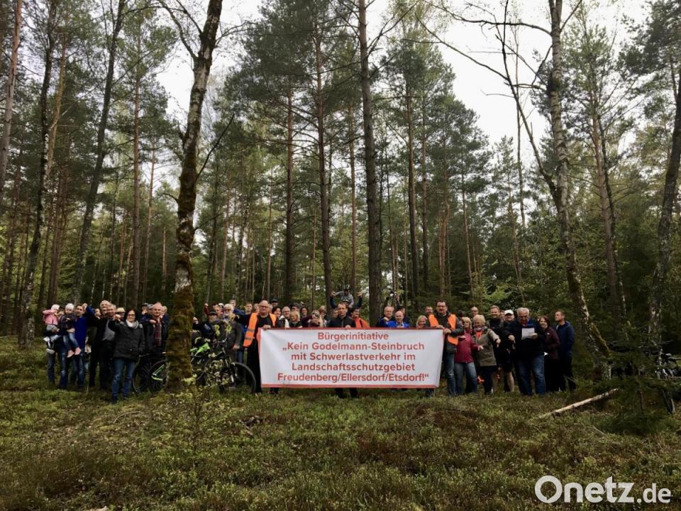 85 Teilnehmer versammelten sich auf dem Dorfplatz in Ellersdorf, um gemeinsam zu dem Waldstück zu wandern, auf dem die Firma Godelmann aus Högling einen Steinbruch errichten will. Die Bürgerinitiative "Kein Godelmann-Steinbruch mit Schwerlastverkehr im Landschaftsschutzgebiet Freudenberg/Ellersdorf/Etsdorf" hatte dazu eingeladen. Etwa die Hälfte der Teilnehmer kam mit dem Fahrrad, die andere Hälfte war zu Fuß unterwegs. Viele Etsdorfer, Bewohner der Oberlanddörfer und Freudenberger waren dabei.