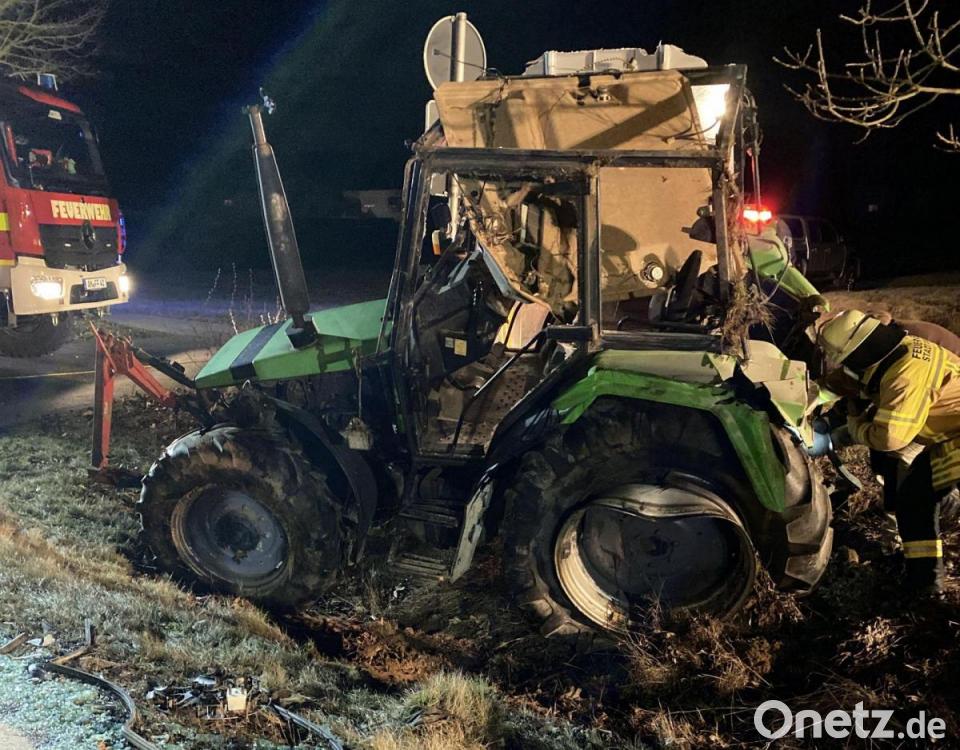 Ein Autofahrer (61) aus Amberg ist am Mittwochabend auf der Staatsstraße 2040 zwischen Engelsdorf und Krumbach (Kümmersbruck/Landkreis Amberg-Sulzbach) auf einen Traktor aufgefahren. Die Wucht des Aufpralls des Pkw auf den vorausfahrenden Traktor, gelenkt von einem 26-Jährigen, war so groß, dass der Bulldog umfiel. Er blieb erst nach mehreren Metern seitlich auf dem Grünstreifen liegen. Wie die Amberger Polizei mitteilt, wurden beide Fahrer leicht verletzt. Der Rettungsdienst brachte die Männer ins Klinikum nach Amberg.