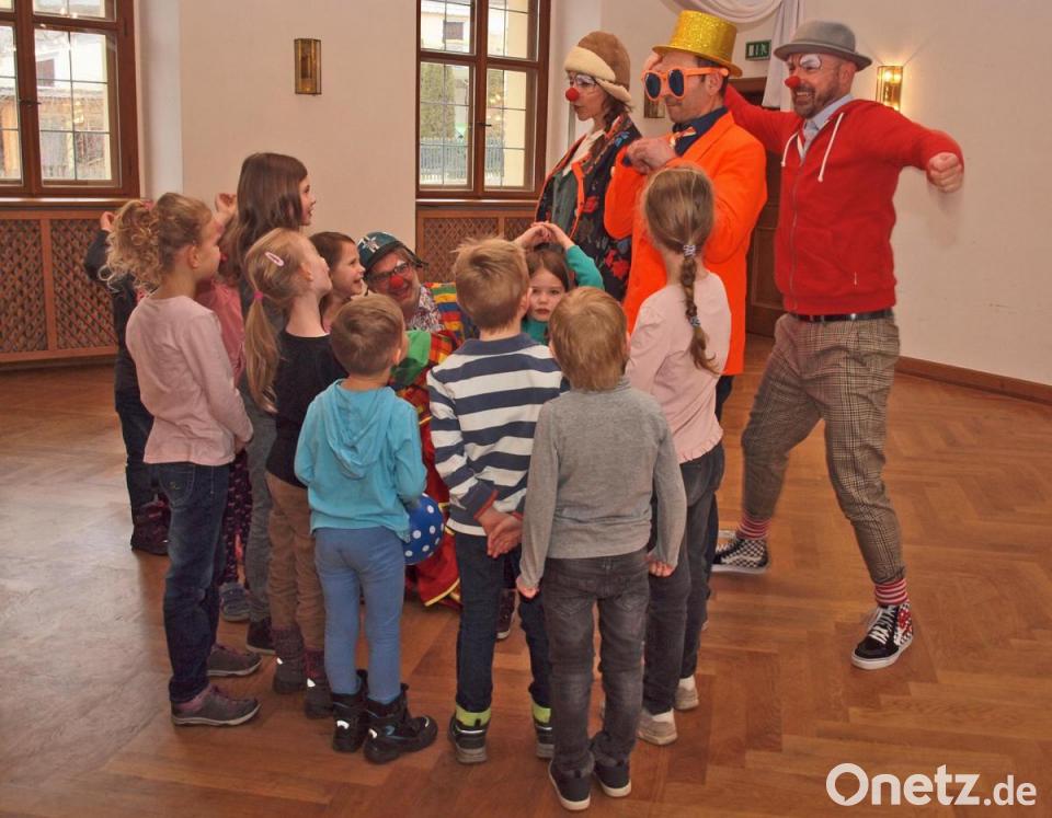 Lautes Gekreische war aus dem Saal zu hören, einige Kinder amüsierten sich schon mit Luftballons, bevor die drei Clowns Olivia, Mücke und Locke das Ruder übernahmen.
