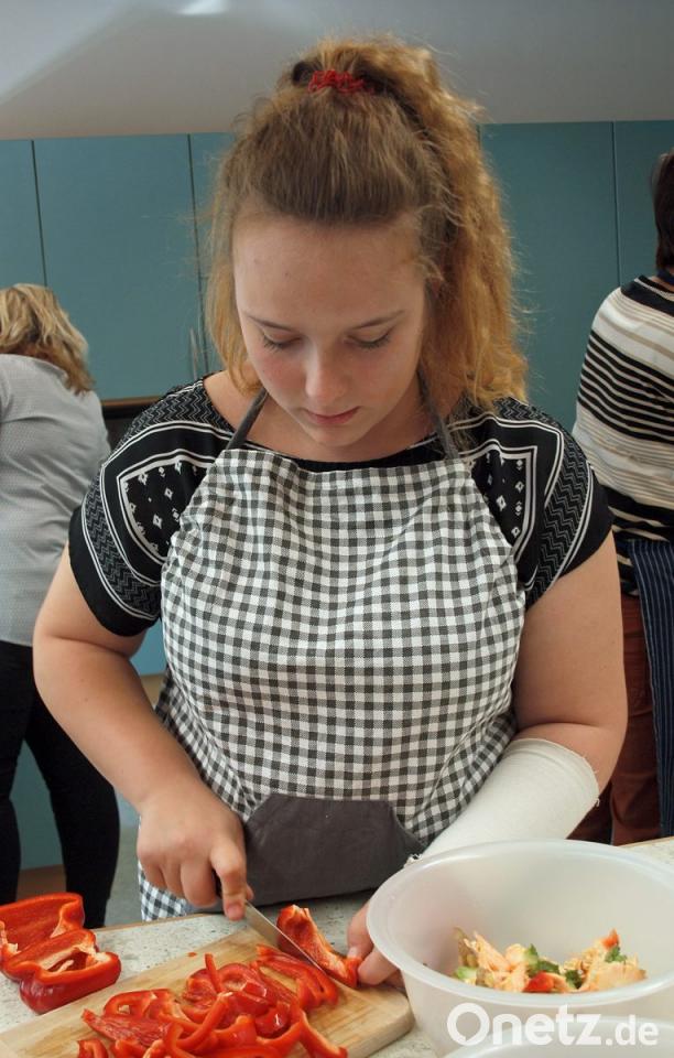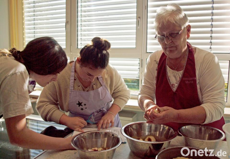 Bei den Senioren-Aktiv-Wochen kamen aktive Seniorinnen in die Ensdorfer Mittelschule, um zusammen mit Neuntklässlern zu kochen. Mit den Mädchen und Jungen, welche den berufsorientierenden Zweig Soziales besuchen, sowie den Seniorinnen besprach die Fachlehrerin die Kochrezepte und betonte „Wir müssen Punkt 12 Uhr das Essen auf dem Tisch haben“. Die Kartoffel sei das Thema, so Agnes Kramer, und so gab es erst einmal eine Einführung in die Sorten. Die festkochende Knolle sei für Kartoffelsalat, Pommes und Rösti zu verwenden, die mehlig kochende für Suppe oder Stampf und die vorwiegend festkochende „eigentlich für alles“. Es standen Ungarische und Tiroler Kartoffelsuppe auf der Speisenkarte, weiter Pellkartoffeln mit Frankfurter Grüner Soße und hartgekochten, kleingeschnittene Eier. „Ein Rezept, das in der Frankfurter Gegend sehr beliebt ist“.