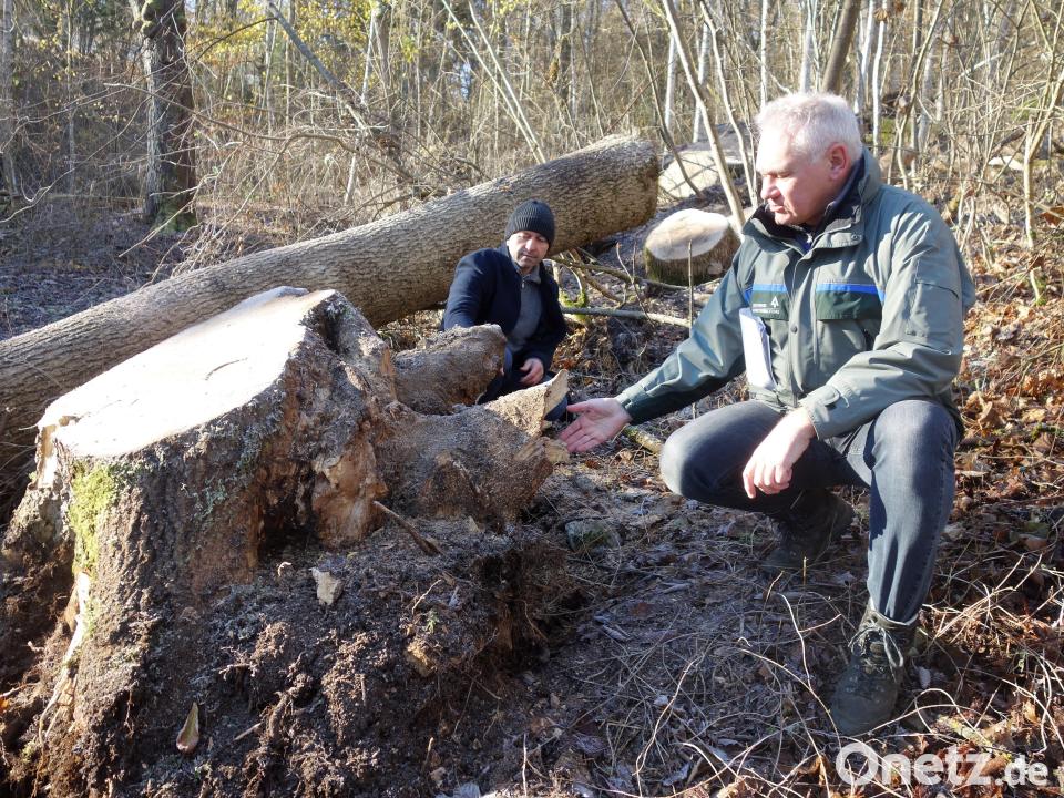 Im vergangenen Oktober fegte der Orkan Ignatz über Deutschland hinweg. Auch in Bayern hat das Sturmtief gewütet, den Landkreis Amberg-Sulzbach aber weitgehend verschont. Im Wald der Gemeinde Ensdorf unterhalb des Eggenbergs am Aufgang zum Kreuzweg und zum Landschaftskino jedoch hat der Wind zahlreiche, teilweise mächtige Bäume entwurzelt und umgeworfen. „Fast ausschließlich waren es Eschen“, konstatierte Bürgermeister Hans Ram bei einer Begehung. Grund hierfür ist das „Eschentriebsterben, eine schwere Baumkrankheit, die durch den aus Ostasien eingeschleppten Pilz ,Falsches Weißes Stengelbecherchen‘ verursacht wird“, erklärte der für den Ensdorfer Gemeindewald zuständige Förster Anton Preischl.