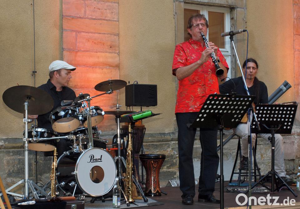 So legten sie nach einem Ethno-Sound für Okarina, Cajon und Gitarre mit der Interpretation eines „Weiberleuttanzes“ los. Das Stück stamme aus dem bayerischen Raum aus der Zeit um 1580 informierte Heinz Grobmeier, dessen Saxophonspiel nur als einpeitschend bezeichnet werden kann. Mit furiosen Schlagzeug- und Gitarrensoli begeisterten Frank Wendeberg und Peter Knoll. Stimmführend Grobmeiers Klarinette beim jiddischen Esa Enai. Bei der Eigenkomposition „6 for 2“ der Drei kam auch das Balafon aus Burkina Faso zum Einsatz, atemberaubend Grobmeiers Klarinetten- und Wendebergs Schlagzeugsolo bei einer Impression aus Griechenland.