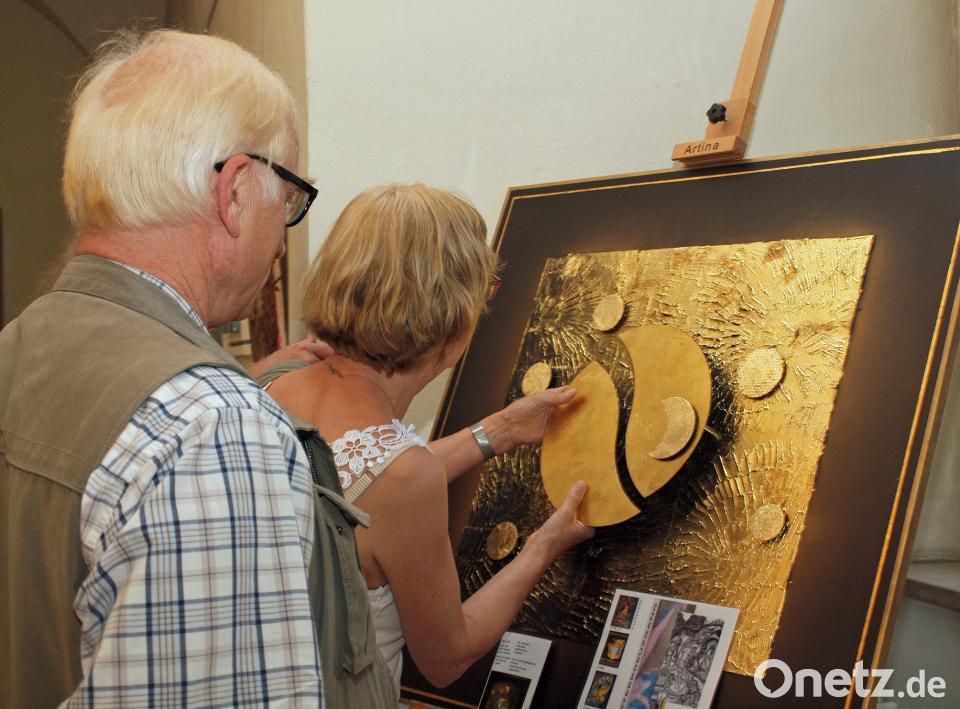Um den mehrfachen Einträgen "weiter so" zu genügen, stellte er die Künstler vor: Als Gäste Petra Decker-Schimanski, sie benutzt Papier zur Darstellung des Naturkreislaufs, und Wolfgang Decker (Bilder, Objekte, Installationen, Text- und Tonkompositionen) aus Hambüren. Aus Niedersachsen seien zugezogen Beatrice Nunold (Acrylbilder, Zeichnungen, Fotoübermalungen, Objekte, Installationen) und der leidenschaftliche Fotograf Uwe Könemann-Nunold. Zum zweiten Mal sei Wolfgang Fetsch mit auf Leinwand gedruckten Blumenbildern dabei. Metallarbeiten zeige Kurt Hügelschäffer im Innenhof, Aquarelle Margot Babl, Malerei, Zeichnungen und Monotypie Gerd Seidl, Ölgemälde Siegfried Link.