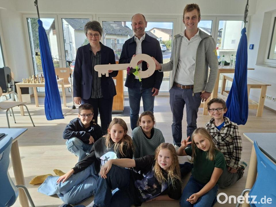 Der CSU-Landtagsabgeordnete Harald Schwartz sagte, in Bayern werde jeder dritte Euro in die Bildung investiert und dieser Schwerpunkt solle so auch bleiben. Schwartz, dessen fünf Kinder verschiedene Schulen besuchen, schätzt das bayerische Schulsystem und bemängelte, dass allgemein derzeit vieles „grau“ gesehen werde, obwohl es eigentlich „viel, viel besser“ sei. Bernhard Heinisch, der Landtagsabgeordnete der Freien Wähler, freute sich ebenfalls, dass die gelungenen Räumlichkeiten für die Kinder der Nachmittagsbetreuung geschaffen wurden. Mit Fürbitten, Gebeten und Weihwasser gab Pfarrer Slawomir Niemczewski den hellen und modern eingerichteten Räumen den kirchlichen Segen, ehe Nicholas Hollweck den Schlüssel symbolisch an Rektorin Helga Gradl und Bürgermeister Hans Ram überreichte.