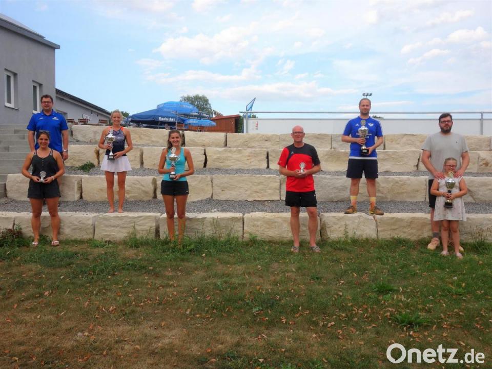 Bei der Siegerehrung bedankte sich Organisatorin Linda Trager bei den sieben teilnehmenden Frauen und 14 Männern. Der durch die erstmals seit Jahren wieder durchgeführten Meisterschaften bewirkte Tennis-Boom soll durch Erwachsenen- und Kindertraining sowie durch eine Doppelmeisterschaft aufrecht erhalten bleiben. DJK-Vorsitzender Christian Scharl dankte Linda Trager für die hervorragende Ausrichtung der Meisterschaften und überreichte mit Lena Bartmann von der Familie Däubler spendierte Pokale an die jeweils drei Erstplatzierten.