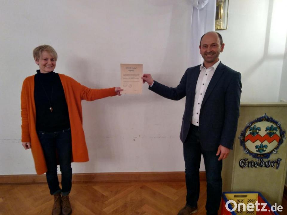 Mit einem Blumenstrauß beglückwünschte Zweite Bürgermeisterin Sabine Müller ihren Ratskollegen Dominik Ernst zu seiner Hochzeit. Auch Müller selbst hatte etwas zu feiern: Bürgermeister Ram überreichte ihr die offizielle Ernennungsurkunde als Standesbeamtin.
