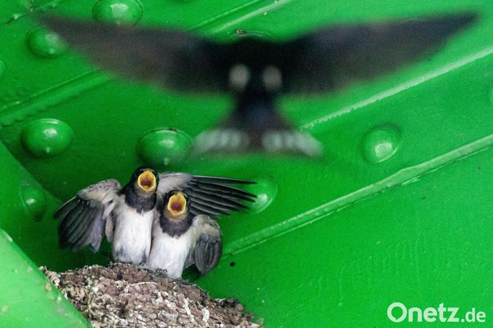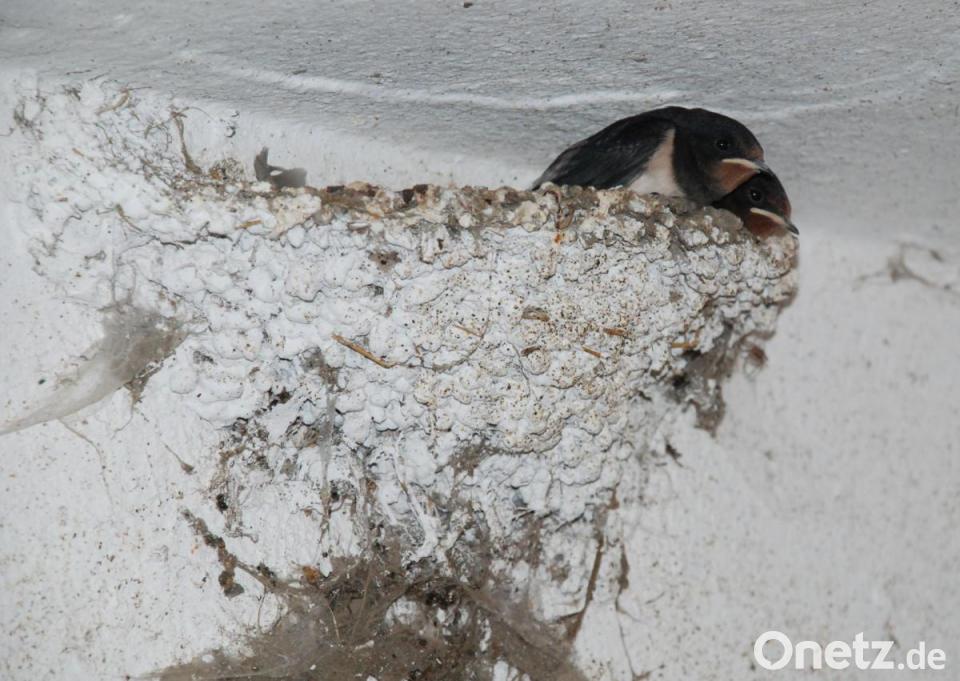 "Aber die Nester werden nicht jedes Jahr neu gebaut", erzählt Hermine Häupl. "Die Schwalbenpaare kommen zurück und besetzen wieder ihr altes Nest." Denn Schwalben sind brutplatztreu und auch monogam. Im Normalfall werden an der bestehenden Unterkunft höchstens Ausbesserungsarbeiten vorgenommen. Manchmal verliert ein Nest den Halt und fällt zu Boden. "Dann wird an die alte Stelle ein neues Nest aufgemauert und zwar in Höchstgeschwindigkeit. Da kann man richtig zusehen, wie das wächst", sagt Hermine Häupl. Innerhalb von nur zwei Tagen sei es dann fertiggestellt und wieder einsatzbereit.