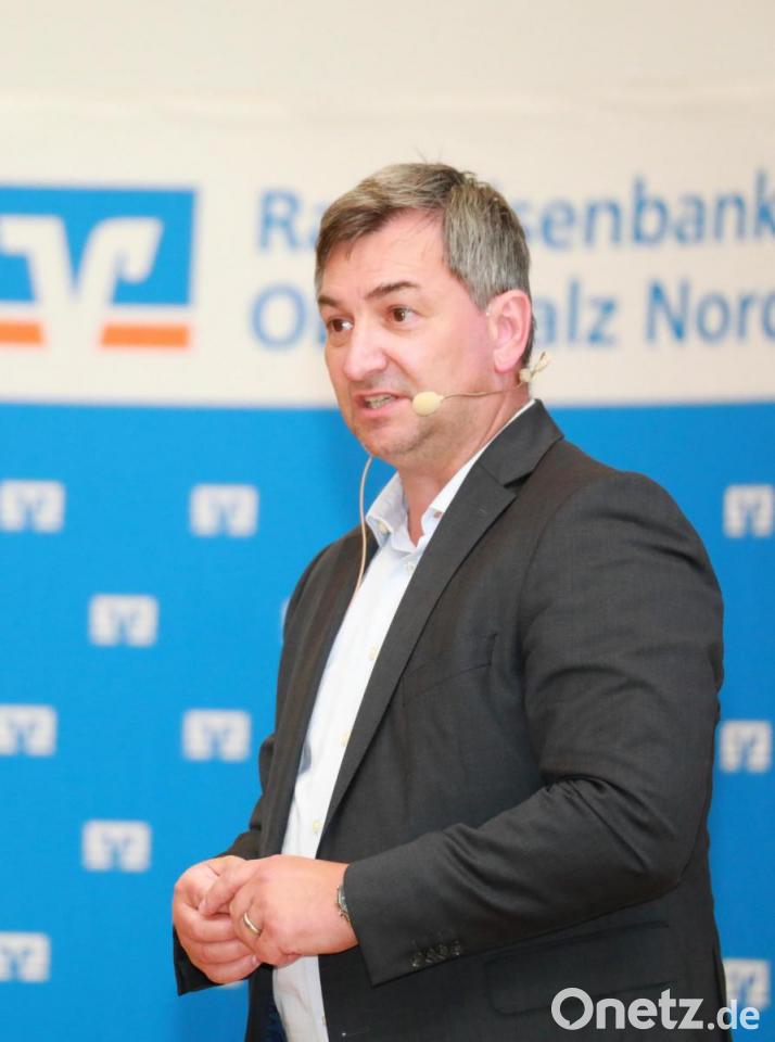 Anlässlich des 125. Gründungsjubiläums hatte die Raiffeisenbank Oberpfalz Nord-West zu einem Vortrag in die Erbendorfer Stadthalle eingeladen. „Die Resonanz auf die Veranstaltung war hervorragend“, freute sich Vorstandsvorsitzender Joachim Geyer. Er stellte den Akteur des Abends vor. „Uns gelang es, Markus Gürne für heute zu gewinnen.“ Seit Januar 2012 ist Gürne Ressortleiter der ARD-Börsenredaktion und berichtet über die Finanzmärkte und das Geschehen an der Frankfurter Börse. Im Januar 2013 übernahm er zusätzlich beim ARD-Wirtschaftsmagazin „Plusminus“ die Moderation.
