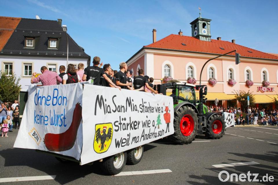Einige Wagen waren in Sachen Werbung unterwegs und wiesen auf die anstehenden Feste wie das "150-Jährige" der Feuerwehr Reuth, das "111-Jährige" der Katholischen Landjugend Störnstein und das 125. Gründungsfest der Wetzldorfer Feuerwehr im Mai 2020 hin. Im Festzelt wurde im Anschluss an den Zug stimmungsvoll weitergefeiert.