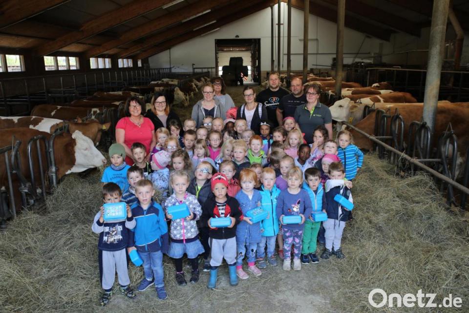 Die Buben und Mädchen des evangelischen Regenbogen-Kindergartens waren zum Kastnerhof am Straßenschacht eingeladen. Einen Vormittag lang erlebten die Kleinen, wie das Leben eines Landwirts so abläuft.