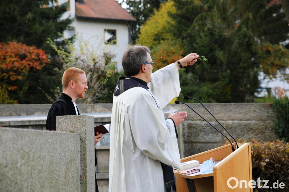 Die kirchliche Segnung der Urnenwand übernahmen die Pfarrer Martin Besold und Christoph Zeh. „Wir wollen die Seele berühren, wenn hier Menschen beerdigt werden“, stellte Besold fest. Er deutete an, dass die Angehörigen beim Verlust eines Menschen auch Zuspruch brauchen. „Sie brauchen wieder eine Hoffnung ins Leben hinein, damit sie weiterleben können.“