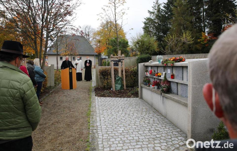 „Für die Erstellung der Urnenwand haben sehr viele Hände ineinandergegriffen“, hob der Bürgermeister hervor. Namentlich nannte er Bauamtsleiter Dieter Döppl, den technischen Angestellten Markus Meyer und Landschaftsarchitekt Albrecht Strohn. Auch die Verwaltungsmitarbeiterinnen Ilona Bauernschmidt und Anja Dietrich. „Auch sie haben mit dem Tod zu tun, wenn das Bürokratische bei einem Sterbefall abgewickelt werden muss.“