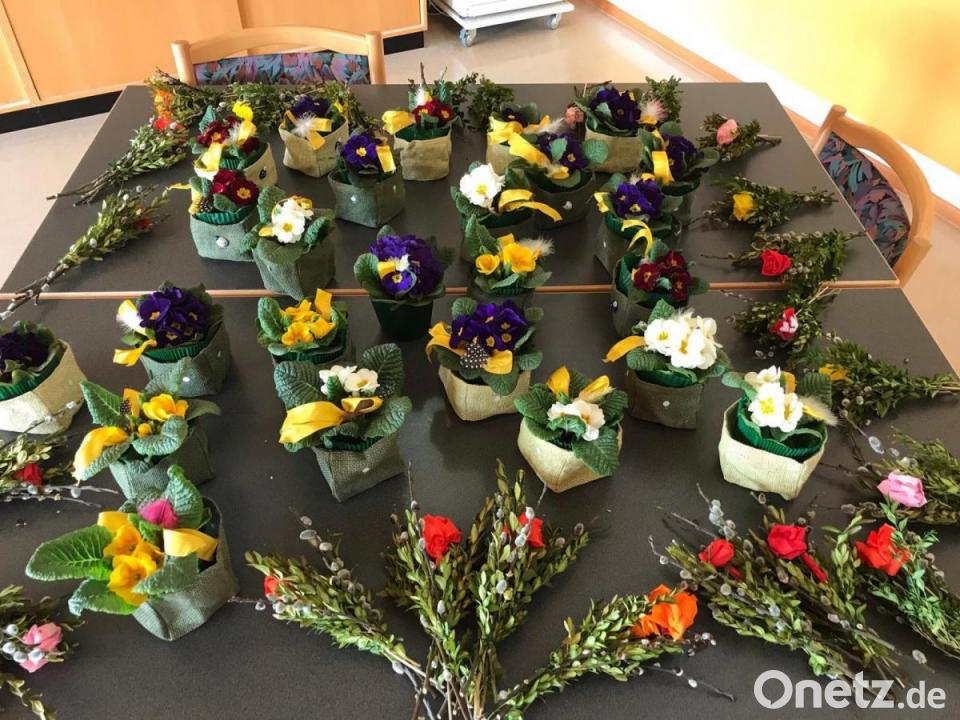 So lieferte die Gärtnerei für die Damen den Blumengruß, österlich geschmückt mit kleinen Federn und Schleifen. „Der Schmuck war eine Spende der Gärtnerei, der unser herzlicher Dank gilt“, freute sich Heimleiter Andreas Wöhrl. Sein Dank galt auch der Bäckerei Schraml, die einen großen Osterzopf in Form eines Ostereies beisteuerte.