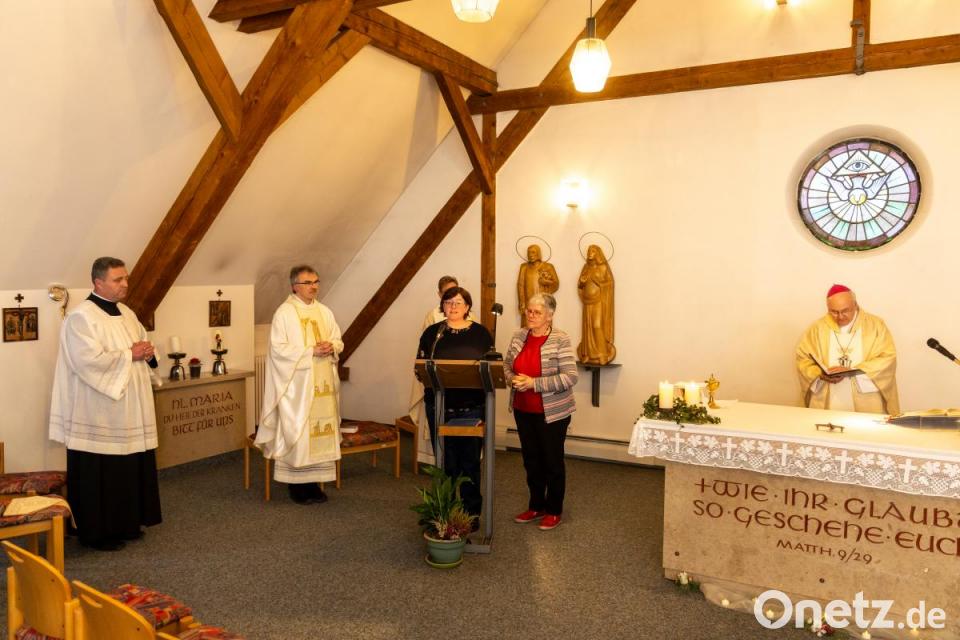 Höhepunkt des Besuchs war ein Gottesdienst in der Krankenhauskapelle, der auch in die Patientenzimmer übertragen wurde. Mit Stadtpfarrer Martin Besold und Diözesanbeauftragtem Dr. Christoph Seidl zelebrierte Bischof Voderholzer die Heilige Messe. In seiner Predigt betonte er die Bedeutung der Seelsorge für Kranke, insbesondere im Kontext der pastoralen Planung 2034 und der damit verbundenen Reduzierung von Pfarrstellen. Der ökumenische Geist wurde durch die von Gemeindereferentin Roswitha Heining und der evangelischen Krankenhauspfarrerin Lisa Keck vorgetragenen Fürbitten unterstrichen. Musikalisch wurde der Gottesdienst von Isabella Baier am Harmonium und Jörg Oppitz mit Gesang und Gitarre gestaltet.