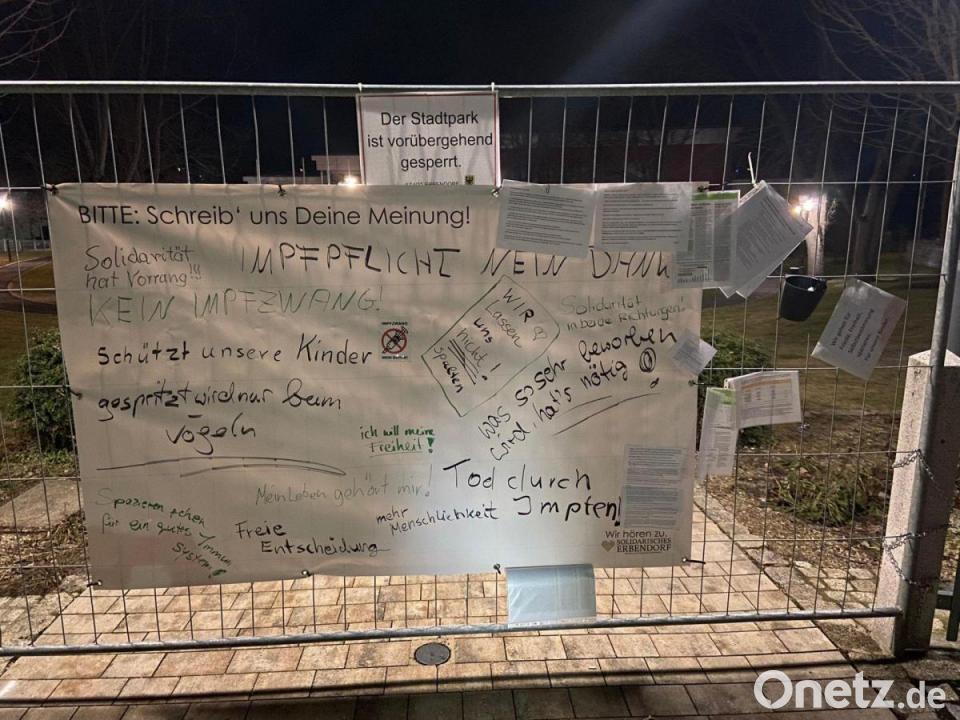 Zufrieden mit ihrer Aktion sind die Mitglieder der Initiative "Solidarisches Erbendorf": Sie hatten am Bauzaun beim Stadtpark, der derzeit gesperrt ist, ein Banner angebracht, auf das die Teilnehmer der "Spaziergänge" ihre Beweggründe schreiben konnten. Es sei "komplett vollgeschrieben", wie Maximilian Seiler berichtet. Auch teilweise lange Briefe hätten sie erhalten, sagt Seiler als einer der Sprecher der Bürgerinitiative. In der nächsten Zeit sollen Banner und Briefe ausgewertet werden. "Wir sind auf dem richtigen Weg", zeigt sich Seiler optimistisch. Auch wenn er weiß, dass die Initiative wohl nicht alle der "Spaziergänger" erreichen wird, "aber die Mehrheit", hofft er. "Wir wollen Angst nehmen", sagt Seiler, mit dem Banner sei schon ein Ansatz geschaffen. Er appelliert: "Es wäre schön, wenn sich jemand melden würde, der für die 'Spaziergänge' verantwortlich ist." Weiter sagt der Notfallsanitäter: "Wenn Nazis mitgehen, dann werden wir uns dagegen positionieren."