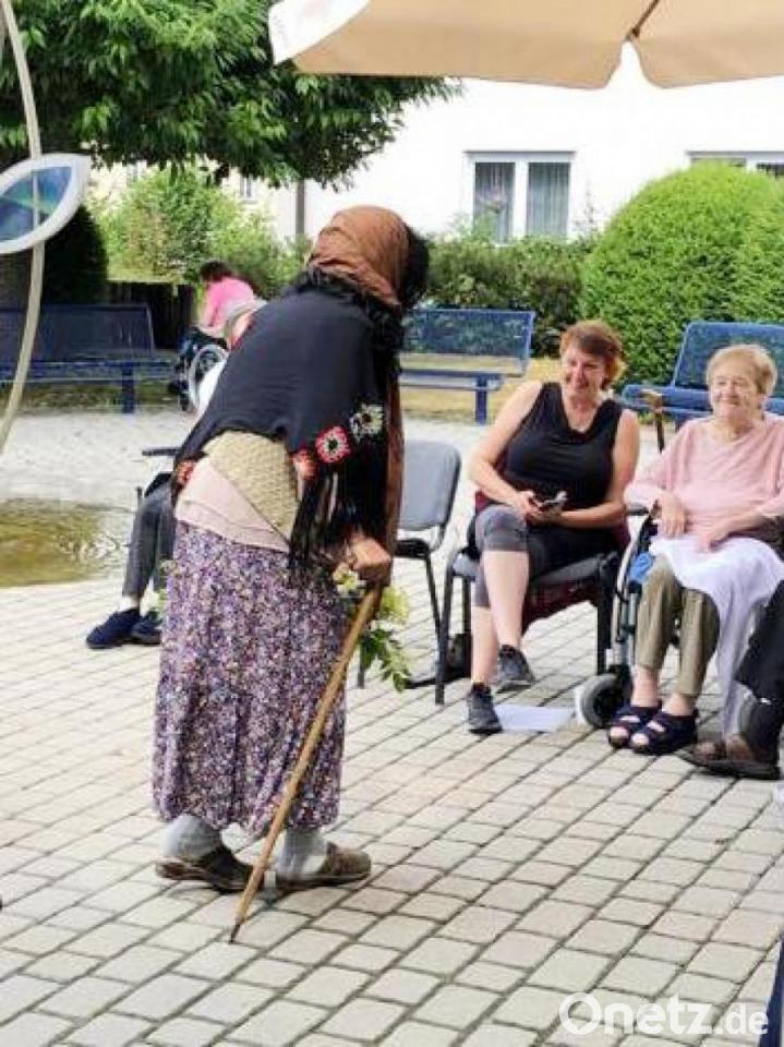 Überraschte Gesichter konnte man sehen, als die „Stoawoldhex“ auftauchte. Mit lustigen Gedichten zur Kräuterkunde sorgte sie für reichlich Spaß. Da waren Lacher garantiert. Natürlich bekamen die Bewohner auch Ratschläge nach neustem Holunderwissen zum einen oder anderen Wehwehchen. Am Ende durfte ein selbstgebrannter Kräuterschnaps nicht fehlen.
