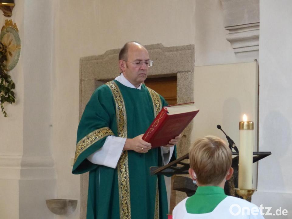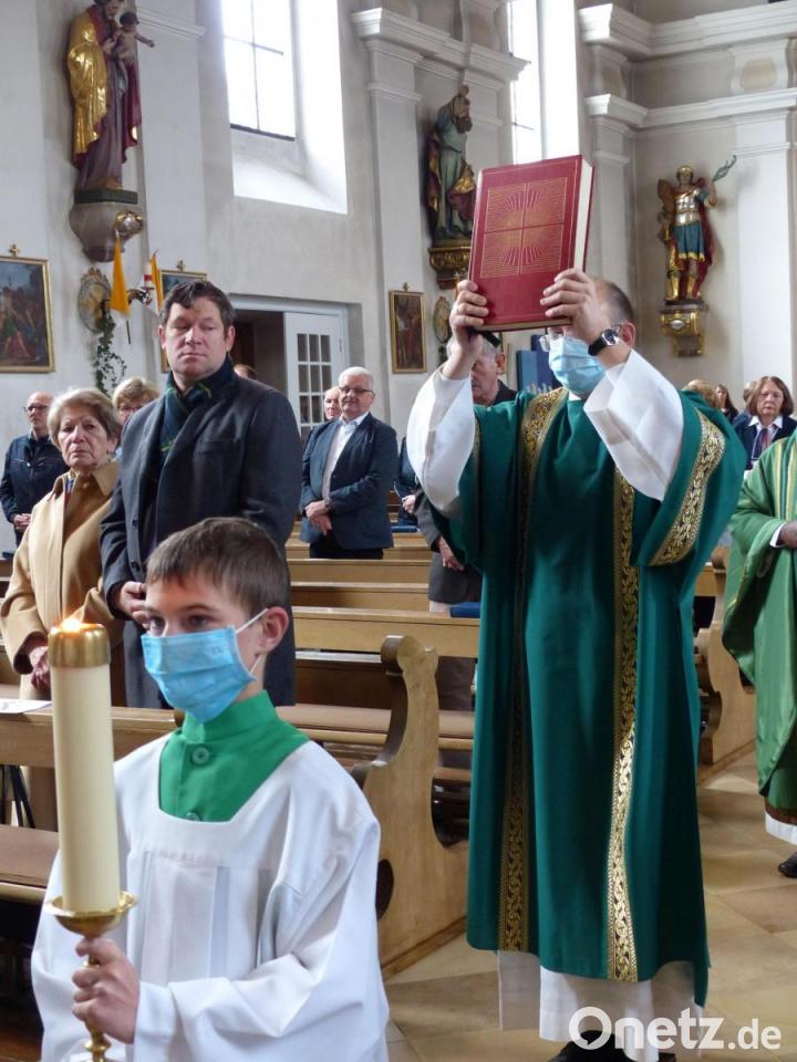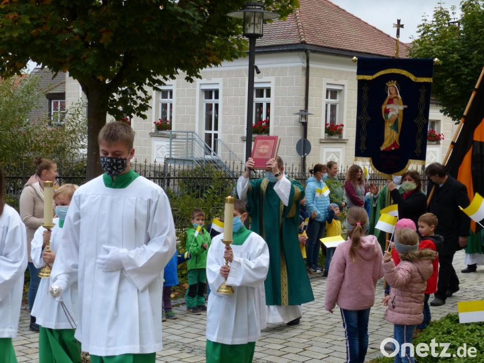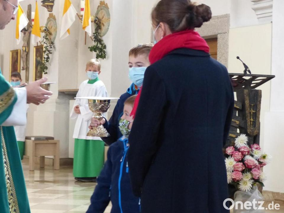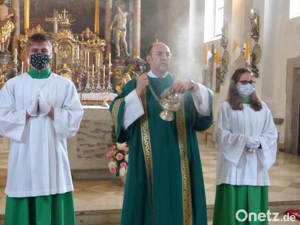 Zwei große Festtage erlebte die katholische Pfarrgemeinde Erbendorf am Wochenende: Nach der Diakonenweihe von Martin Schraml am Samstag im Regensburger Dom wurde er am Sonntag in seiner Heimatpfarrei herzlich begrüßt. Vor dem festlichen Gottesdienst überbrachten die Kinder des katholischen Kindergartens ihre Glückwünsche. Mit kleinen Fähnchen in der Hand empfingen sie vor der Pfarrkirche im Freien den frischgebackenen Diakon. Danach zog Martin Schraml mit Pfarrvikar Linus Chukwudi Nwankwo und Pfarrer Martin Besold, begleitet von den Ministranten und den Fahnenabordnungen, in das Gotteshaus ein.