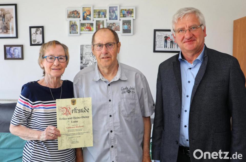 Das Ehepaar Lotse feierte Goldene Hochzeit: Seit 50 Jahren sind Erika und Heinz-Dieter verheiratet, vor gut zwei Jahren hat es die der Familie von Halle nach Erbendorf verschlagen. Bürgermeister Johannes Reger überbrachte zum Jubiläum die Grüße der Stadt. Erika und Heinz-Dieter Lotse sind seit 50 Jahren glücklich verheiratet. Beide stammen aus Halle, wo sie sich auch an Fasching 1973 kennen- und liebengelernt haben. Bereits ein Jahr später, im Mai 1974, läuteten für beide in der Stadt der bekannten Halloren-Kugeln die Hochzeitsglocken. Ehefrau Erika arbeitete in den Buna-Werken und Ehemann Heinz-Dieter beim Vaka-Tankanlagenbau. Das Paar bekam zwei Töchter. Eine Tochter hat am Steinwald eine Familie gegründet – das war auch der Grund, dass das Ehepaar Lotse sich dazu entschloss, in ihre Nähe zu ziehen. So bezogen sie 2022 eine Wohnung in der Jahnstraße. Mit der ganzen Familie und zwei Enkelkindern wurde die Goldene Hochzeit kräftig gefeiert.