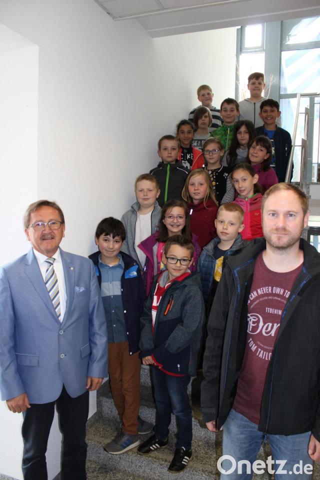 Um sich ein Bild darüber zu machen, besuchten sie Bürgermeister Hans Donko im Rathaus. Im Amtszimmer des Bürgermeisters begann in zwei aufeinanderfolgenden Gruppen die Tour durchs Rathaus. Bürgermeister Donko zeigte den Schülern unter anderem die goldene Amtskette, die vom Ehrenbürger der Stadt, der ehemalige Passauer Bischof Wilhelm Schraml, gestiftet wurde. Über das Einwohnermeldeamt und Standesamt konnten die Kinder auch einen Blick ins Trauungszimmer werfen. Vom Bauamt über die Stadtkasse ging es zu guter Letzt in den Sitzungssaal im Kulturspeicher, wo sich die Schüler einmal wie Stadträte fühlen konnten. Gemeinsam mit dem Klassenlehrer Benjamin Koppmann stellten die Buben und Mädchen noch viele Fragen an das Stadtoberhaupt.