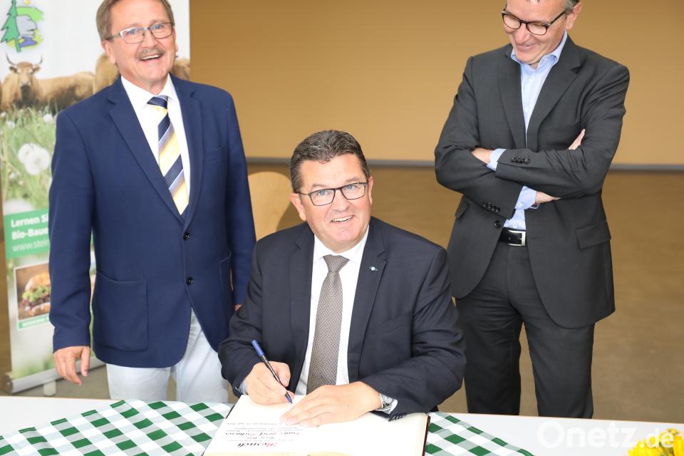 Am Rande der Übergabe des „Mobilen Dorfladens“ an die Steinwald-Allianz trug sich der bayerische Staatsminister für Wirtschaft, Energie und Technologie, Franz Josef Pschierer, in das Goldene Buch der Stadt Erbendorf ein. Bürgermeister Hans Donko freute sich über dessen Eintrag.