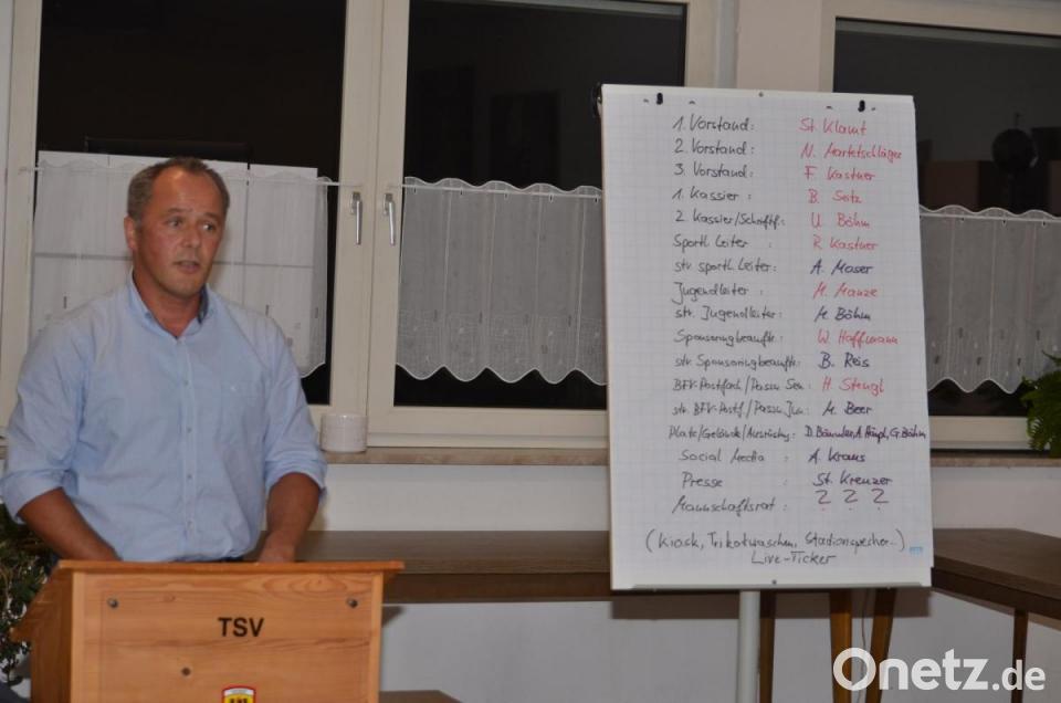 Im Vorfeld der Jahreshauptversammlung hatte der 49-jährige Klamt fleißig Gespräche geführt. Das Ergebnis war ein 18-köpfiges Team, das Klamt den Mitgliedern präsentierte. Der Erbendorfer setzt auf neue Strukturen und mehr Arbeitsteilung. Von der Wahl seines Teams machte er seine Kandidatur als Vorsitzender abhängig. Denn er könne das Amt nicht so zeitintensiv ausfüllen wie sein Vorgänger Reis, begründete er dies. Er wolle die Aufgabe im Team angehen, erklärte der frühere Stürmer der Ersten Mannschaft.