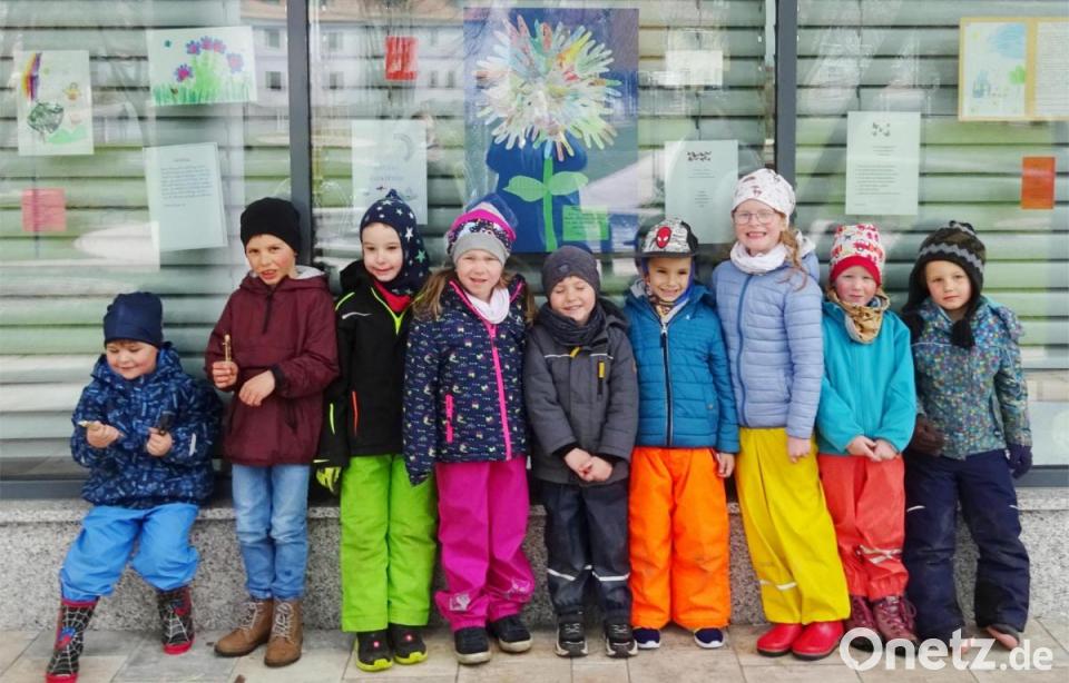 Stolz brachten die Kinder das Kunstwerk zum Rathaus, wo als Belohnung auch eine kleine Überraschung auf sie wartete. Dieses und weitere Kunstwerke können an der Fensterfront des großen Saals der Stadthalle bewundert werden.