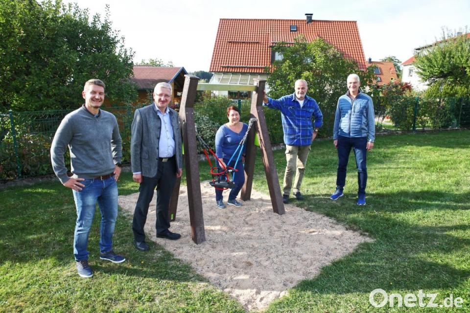 Der Hans-Müller-Spielplatz am Naabberg wird vom SPD-Ortsverein seit Jahren gehegt und gepflegt. Seit Neuestem ist er um eine Kleinkinderschaukel reicher. Bürgermeister Johannes Reger sprach seinen Dank für das Engagement aus.