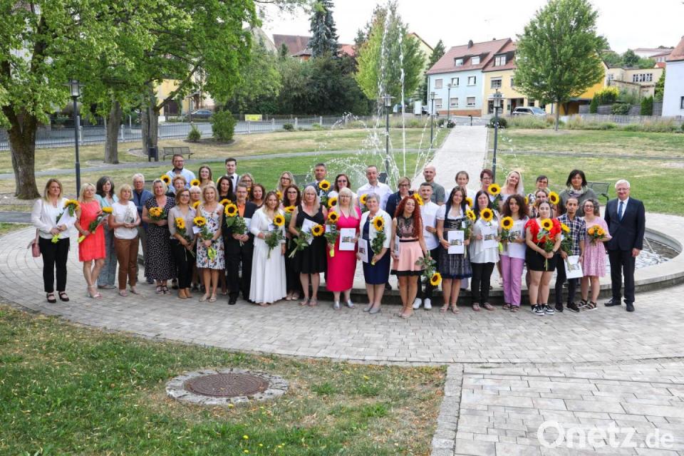 „Auch ich werde heute Abschied nehmen und in den Ruhestand gehen“, erklärte die Schulleiterin mit einer Träne im Auge. „Über viele Jahre haben sie uns am Berufsbildungszentrum begleitet“, sagte Reger. „Sie hat unsere Schule von Anbeginn an geprägt.“ Nach den Dankesworten von Schülern der Abschlussklassen überreichten Lehrer, Schulleiterin und Bürgermeister die Zeugnisse an die Absolventen.