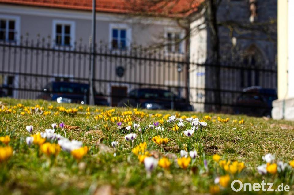 Die Kirchenfarben erstrahlen im Park der katholischen Pfarrkirche. Der Frühling hält Einzug und Hunderte von Krokusse sprießen auf der Wiese. Es ist schön anzusehen, wie die Krokusse dort aus dem Rasen wachsen. 2018 setzte der Imkerverein gut 1000 wilde Krokusse im Stadtpark aus und brachte ihn zum Erblühen. Der Kirchenpark an der Südseite folgte ein Jahr später. Seitdem wachsen sie immer wieder von Neuem.