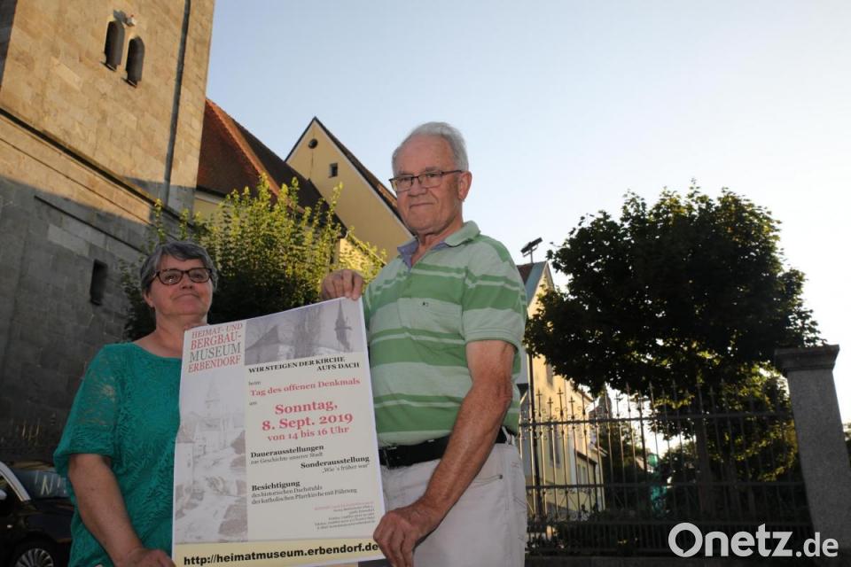 Das Museumsteam des Heimat- und Bergbaumuseums hat sich zum „Tag des offenen Denkmals“ am Sonntag, 8. September, etwas besonderes einfallen lassen. Mit den Besuchern steigt sie sprichwörtlich aufs Dach der katholischen Pfarrkirche Mariä Himmelfahrt. Wie Museumsleiter Manfred Klöble sagte, finde am Nachmittag zu den Öffnungszeiten von 14 bis 16 Uhr Führungen im Dachstuhl der Pfarrkirche statt. „Damit besteht für Interessierte die Möglichkeit, einmal einen Blick in das historische Gebälk zu werfen.“ Obwohl die Pfarrkirche schon im 15. Jahrhundert genannt wird, ist der Dachstuhl relativ jung. „Schuld daran sind die vielen Stadtbrände in Erbendorf gewesen“, wusste Klöble.