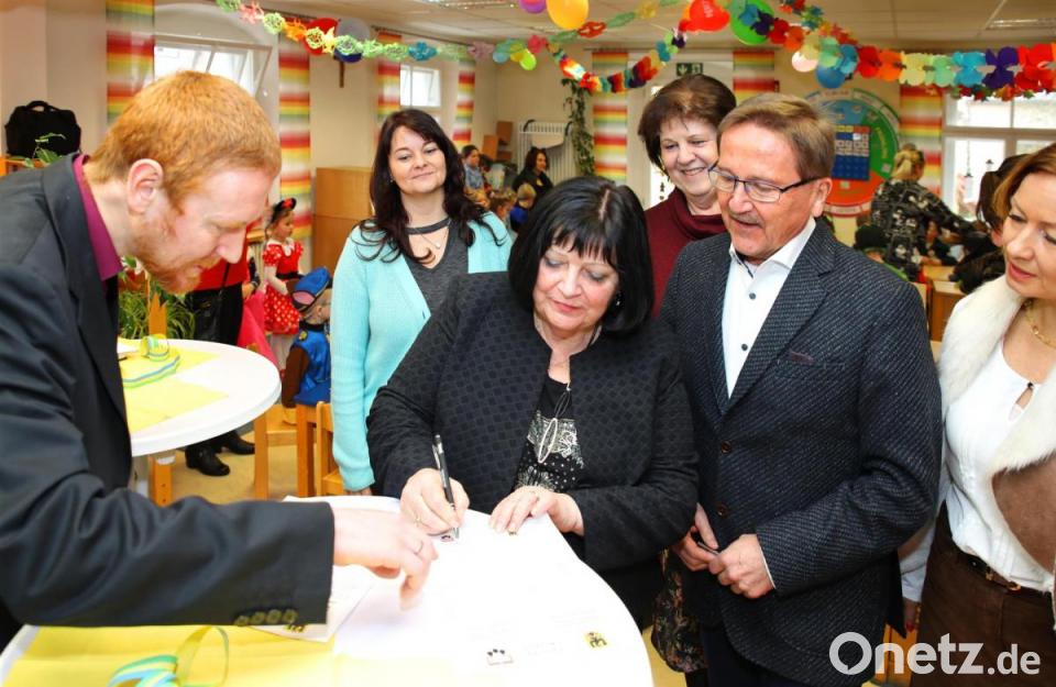 Bürgermeister Donko freute sich über die Partnerschaft mit dem Nachbarland. „In Erbendorf wurden zwischen Schule und Feuerwehr bereits einige länderübergreifende Partnerschaften geschlossen“, stellte er fest. Es gelte, diese Partnerschaft auch mit Leben zu füllen. Die Urkunden unterzeichneten für die beiden Kindergärten deren Leiterinnen Brunhilde Minnich und Kamila Peskova. Für die Stadt Erbendorf griff Bürgermeister Donko zum Stift und für die Stadt Velka Hledsebe, in deren Gemeindegebiet Klimentov liegt, Bürgermeisterin Jaroslava Brozova Lampertova. Beide sicherten zu, die Partnerschaft zu fördern und zu unterstützen.