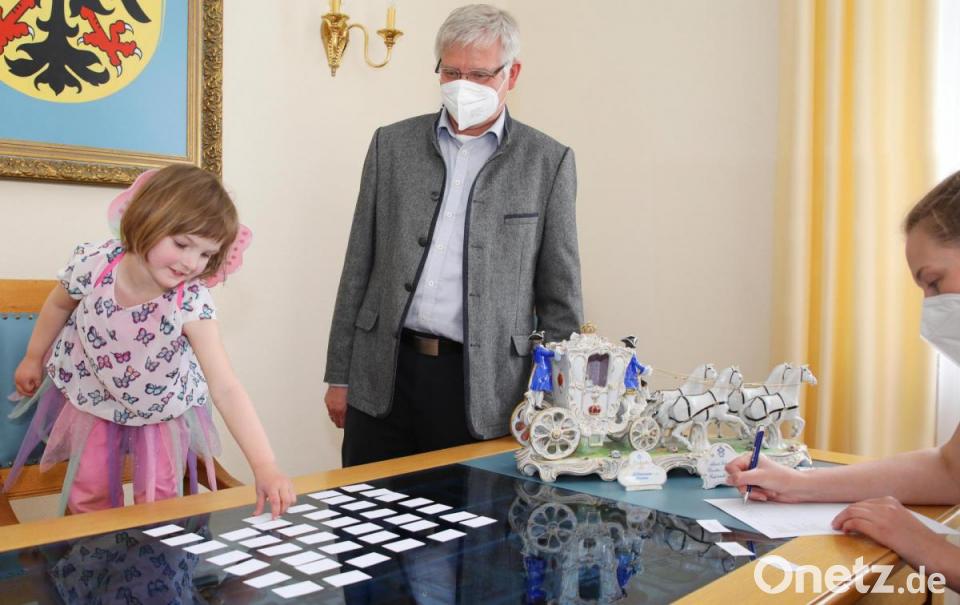 Insgesamt gingen knapp 50 Lösungen, unter anderem auch von Besuchern aus anderen Gemeinden, ein. Zum Abschluss der Poesie-Rallye stand im Rathaus nun die Verlosung an. Aus den Einsendungen zog die dreijährige Glücksfee Eleonore Jadwiga die zehn Gewinner.